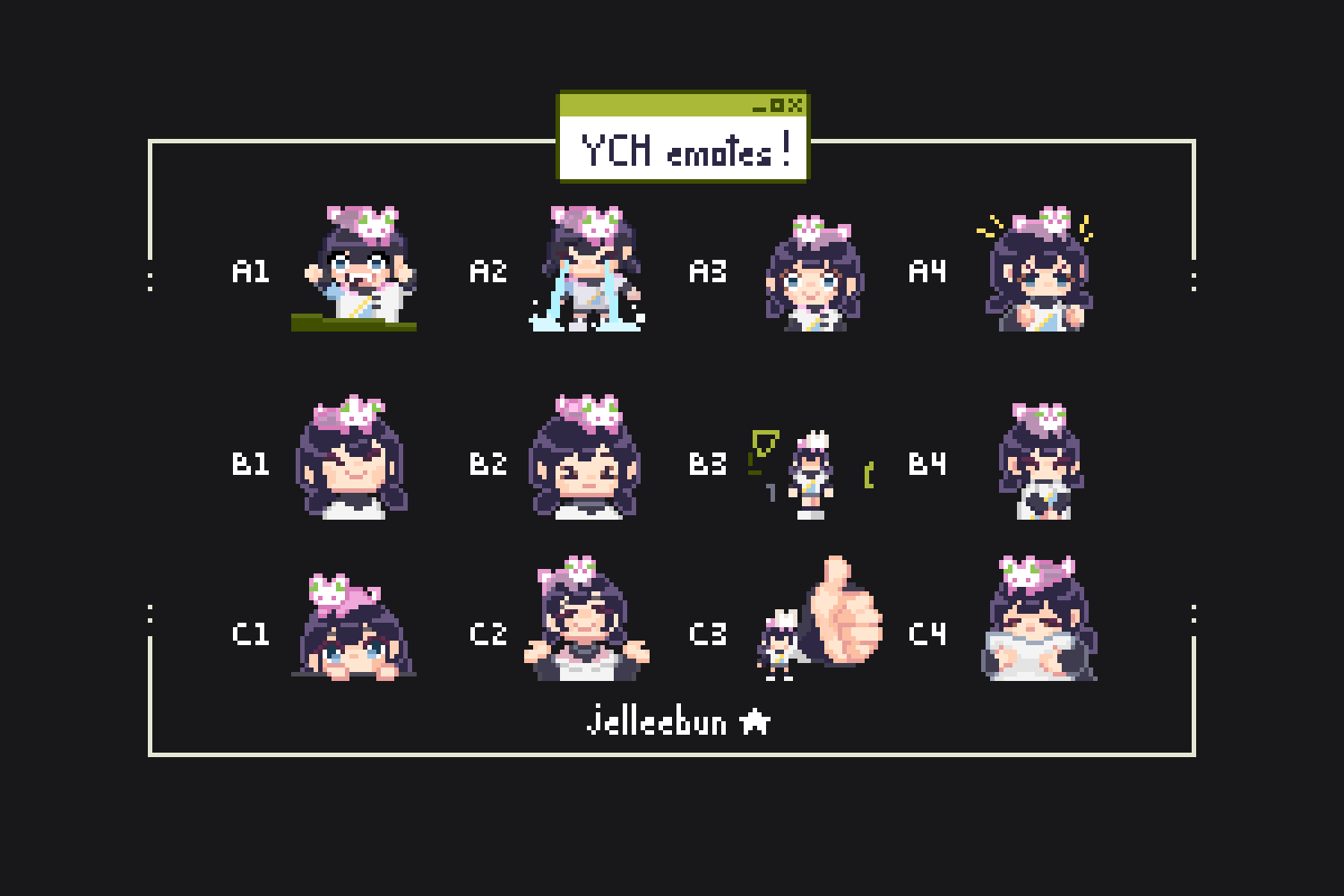 ☆ animated emotes will also include a specific static frame to use as the thumbnail :)GROUP A (animated): $30 each